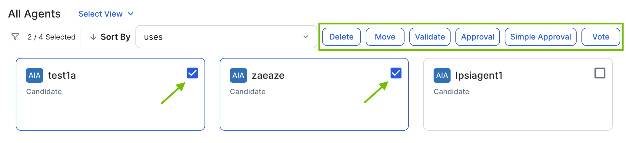 The asset filter enables you to quickly find the AI agents you want, by limiting the number of AI Agent assets shown in the view. |