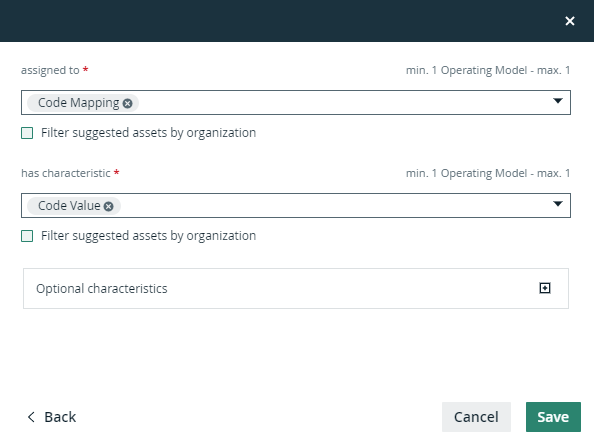 - The minimum and maximum number of assets that you can add is shown in the upper-right corner of each relation field. If the maximum number isn't shown, then it means that it hasn't been set.