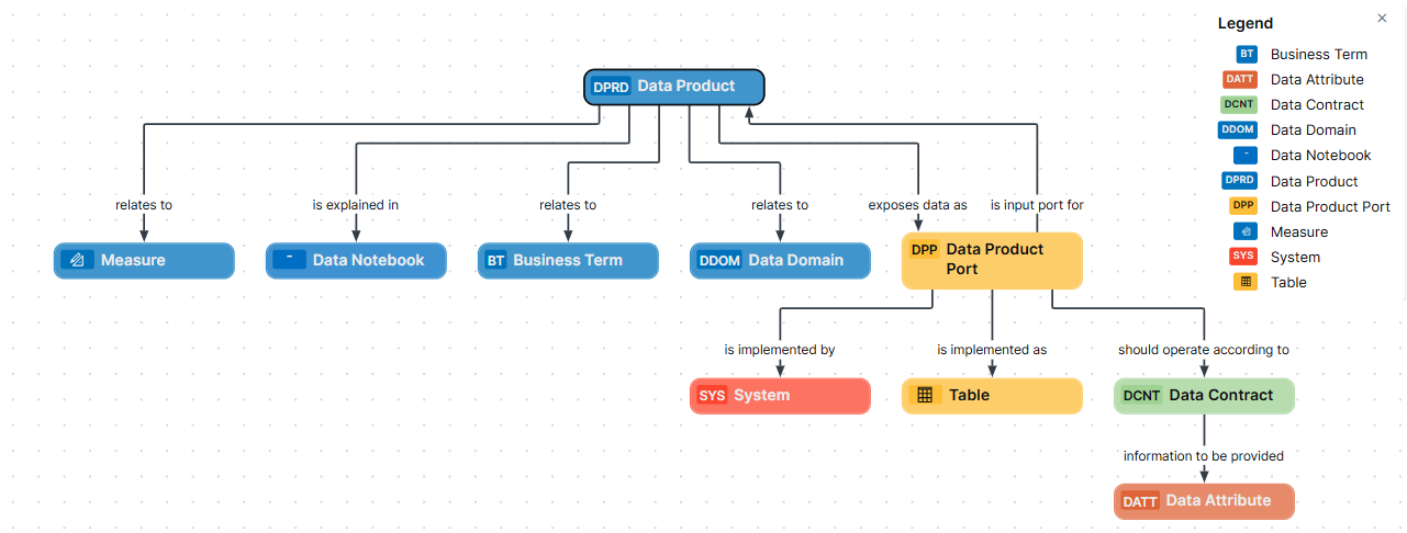In advanced governance use cases, you can use the child asset types Data Product Output Port and Data Product Input Port, and their relations.