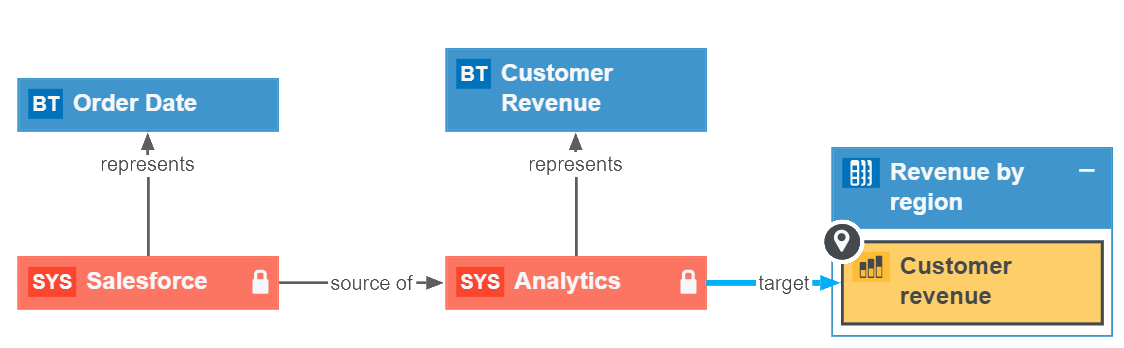 Diagrams is a feature to show and interact with many assets and relations in an easy-to-read representation. A diagram helps you to quickly see the assets to which a specific asset is related. Two assets are related if you can navigate from one asset to another by traversing one or more relations.