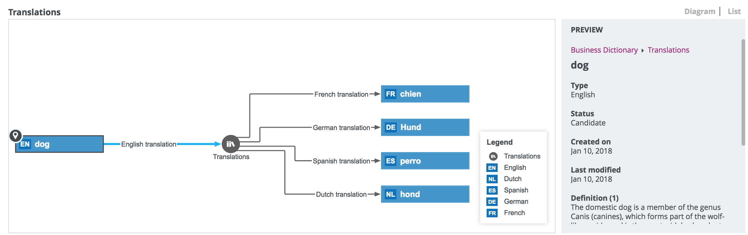 | Relation | Relations of the same type are shown in a list. You can show the list in different display modes: | ||||||||||||