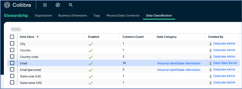 If you have defined Data Category assets in Collibra, you can link them to one or more data classes. As a result, if a column is classified with a data class that is linked to a data category, we'll automatically create a relation between the column and the data category. This way, through Data Classification, you can create a list of the columns that contain specific data categories such as PII.