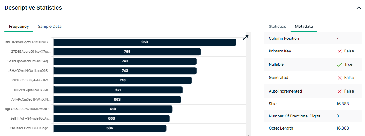 • By default, profiling results are automatically anonymized for columns with the Text or Geo data type.