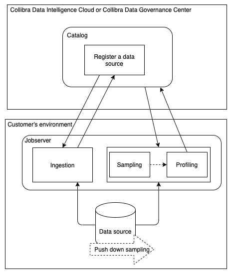 By default, the complete data set is transferred to Jobserver. Then Jobserver creates a representative subset of the data to profile, based on your data source. Jobserver then profiles that data and sends the profiling results to Data Catalog. You can enable the Anonymize data option to hash or remove profiling results that can be considered sensitive.