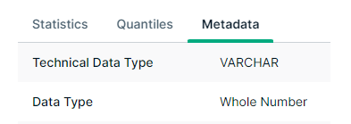 The data type of the column. This type is detected by the profiling process. This data type can differ from the Technical Data Type value. Show information about data type detection via Edge.