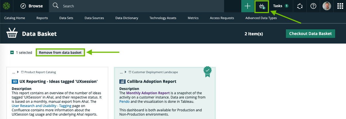 4. When you are ready, click Checkout Data BasketCheck out Data Basket.