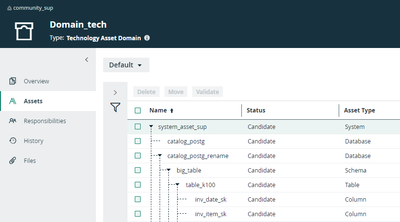If you move the resulting Table and Column assets to another domain and you run the integration again, the Table and Column assets will be moved back to their initial domain. However, if you move the resulting Database or Schema asset to another domain, the Database asset will remain in the new domain.