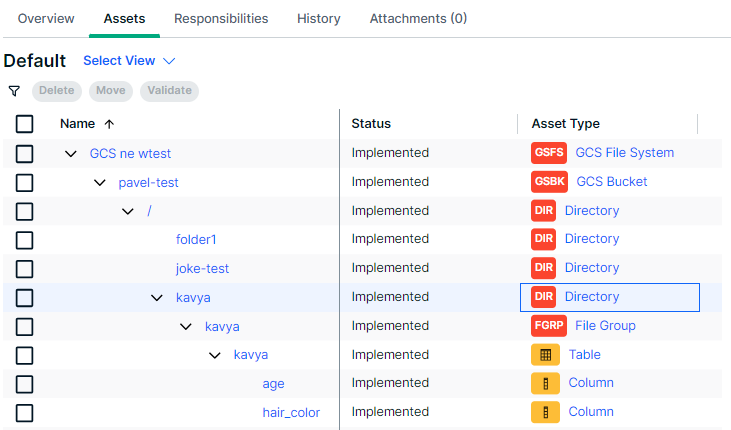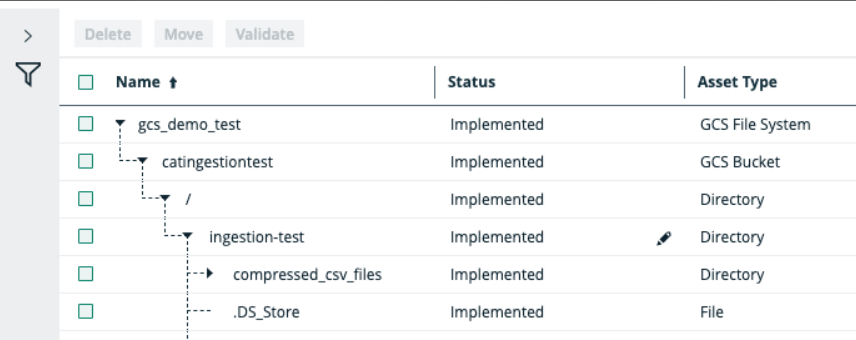 After synchronization, the files and directories of the GCS file system are represented in Collibra by specific asset types, retaining the original names.
