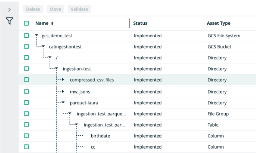 The Google Cloud Storage (GCS) file system integration allows for the registration of Google Cloud Storage (GCS) as a data source in Collibra and the synchronization of the metadata. The GCS integration supports Google Dataplex, a service used for schema discovery. This allows you to integrate the schemas, tables and columns from the files and create a File Group asset in Collibra rather than multiple File assets. This GCS integration will integrate data from GCS based on the configured crawler and in addition add Tables and Columns recognized by Dataplex, which are related to files and file groups. |