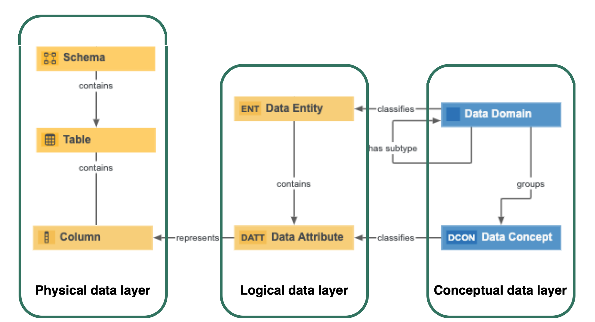 Tip The physical data connector enables you to quickly connect Data Attribute assets to Column assets. However, you can also connect the physical data layer to the logical data layer via Data Catalog's asset pages by adding a relation of the type Data Attribute represents / represented by Column. |