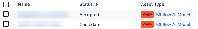 The following image shows an example of the asset type in Collibra after the integration of MLflow AI Models.