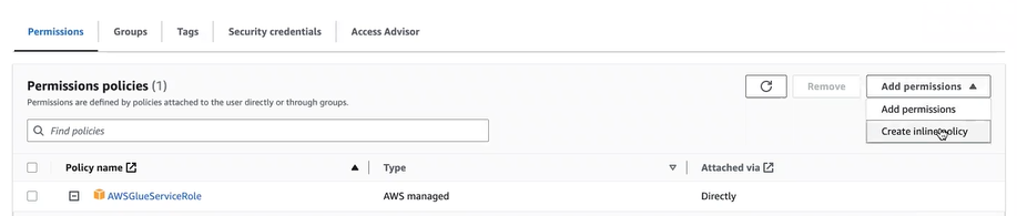 • AWS managed policy: AWSGlueServiceRole.
