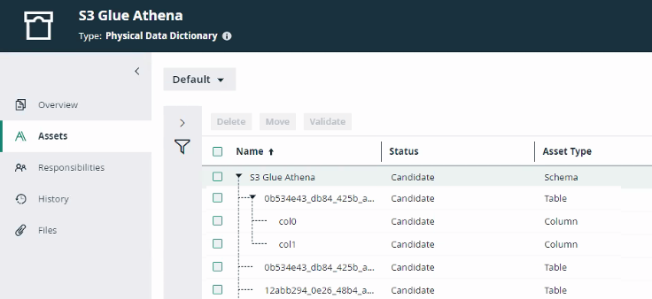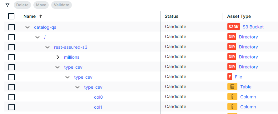 If you integrate an Amazon S3 file system, the resulting assets represent the Amazon S3 folder structure by means of Amazon S3 Bucket, Directory, File, Table and Column assets. | ||