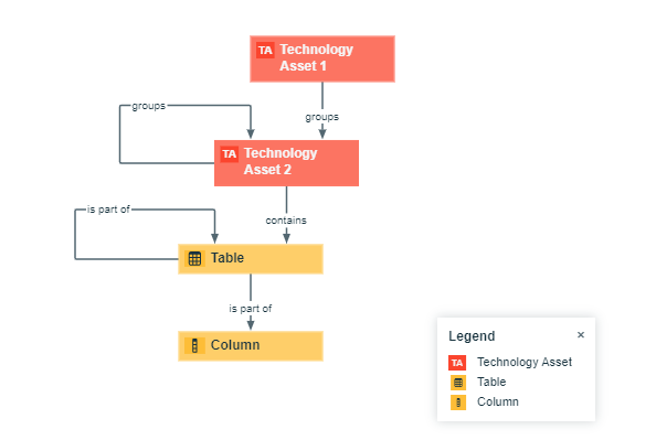 The following image shows the relations between S3 asset types and the cardinality of the relation types in the asset type assignment.