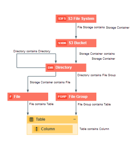 The Amazon S3 file system integration of Collibra Platform uses a specific subset of asset types. All of these come out of the box with your software.