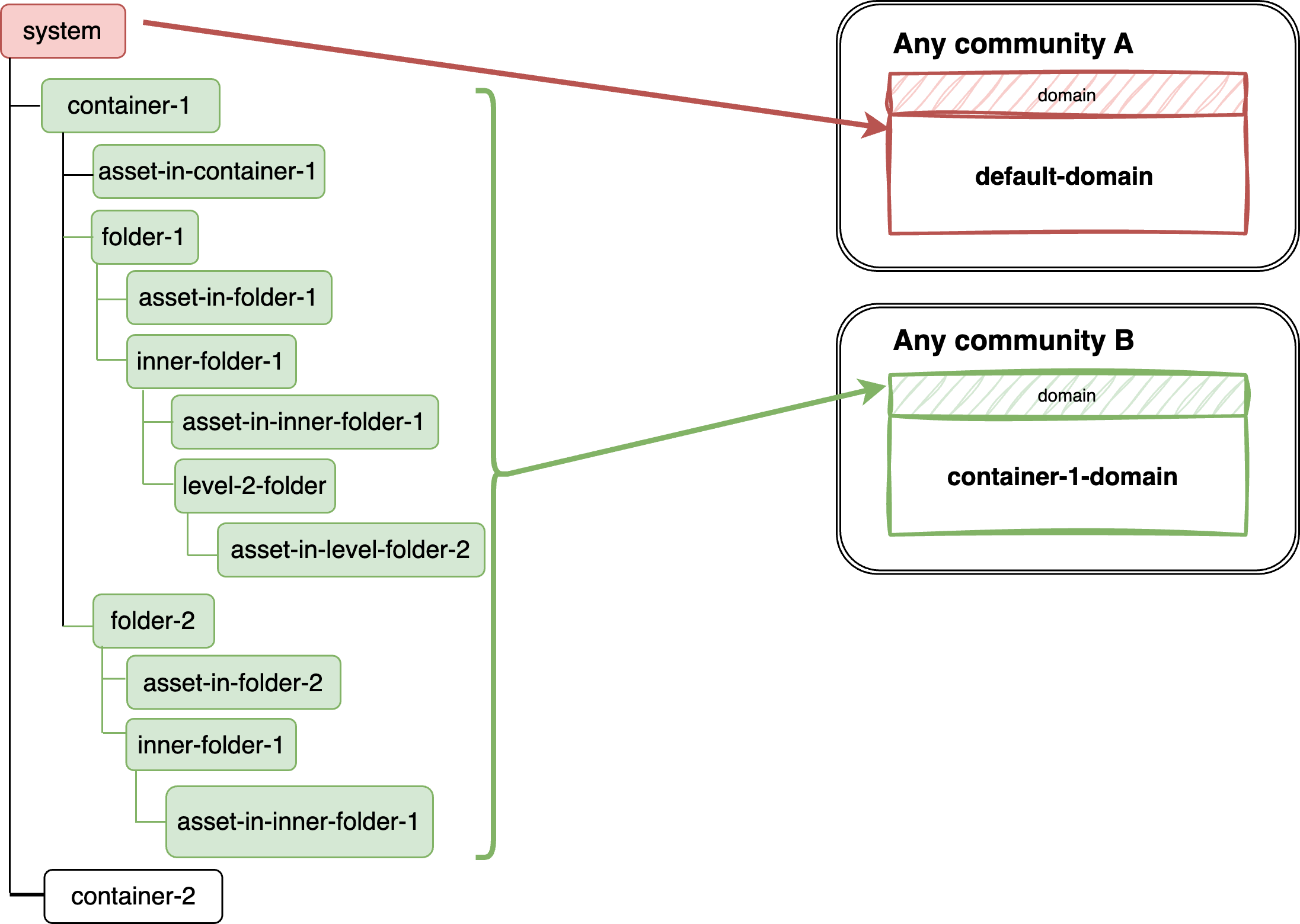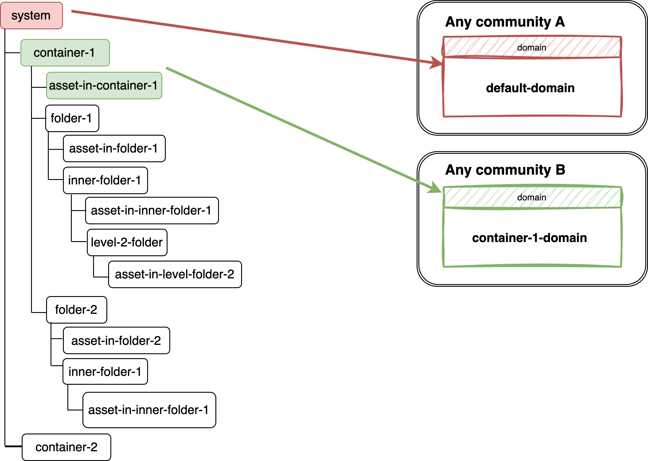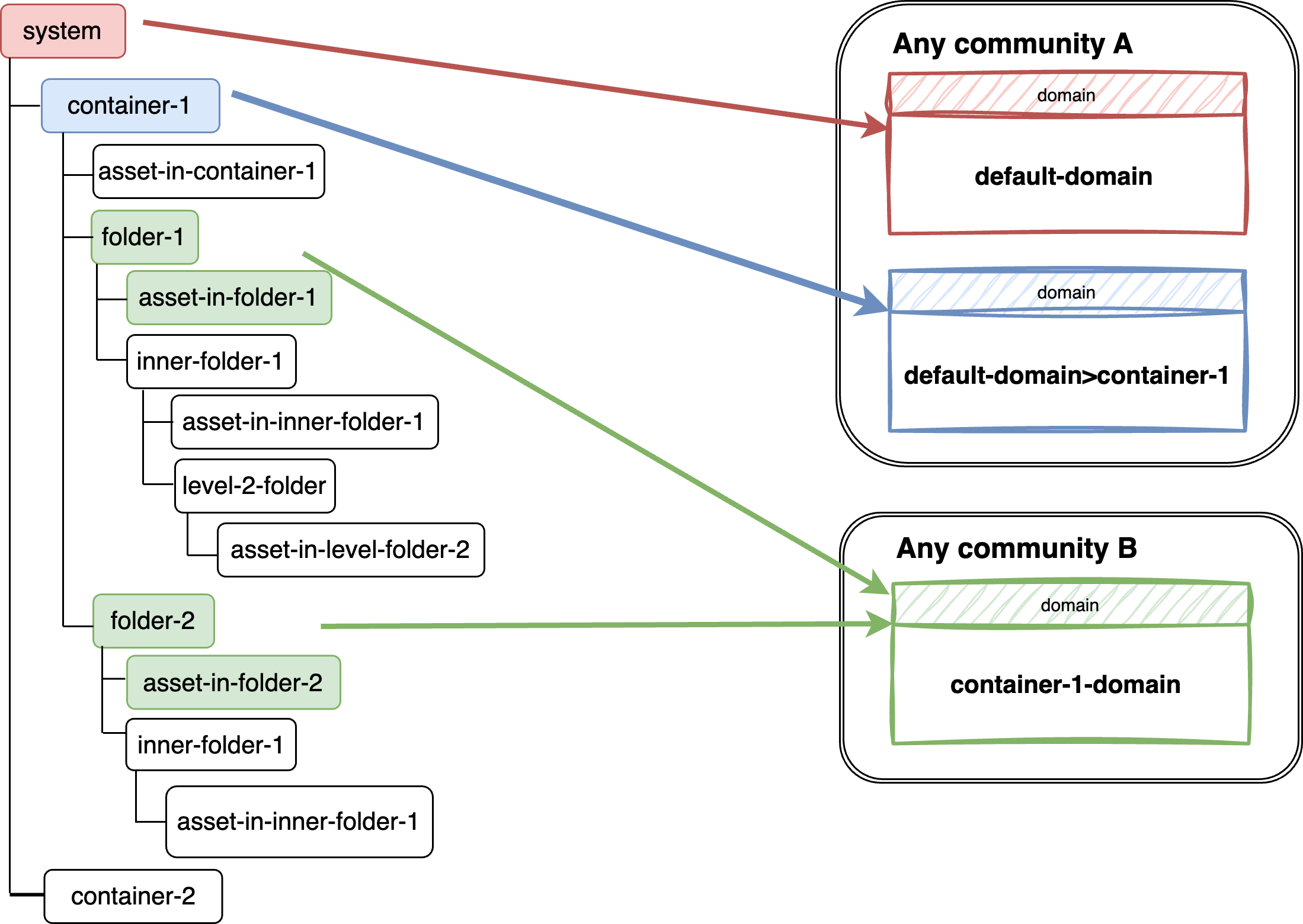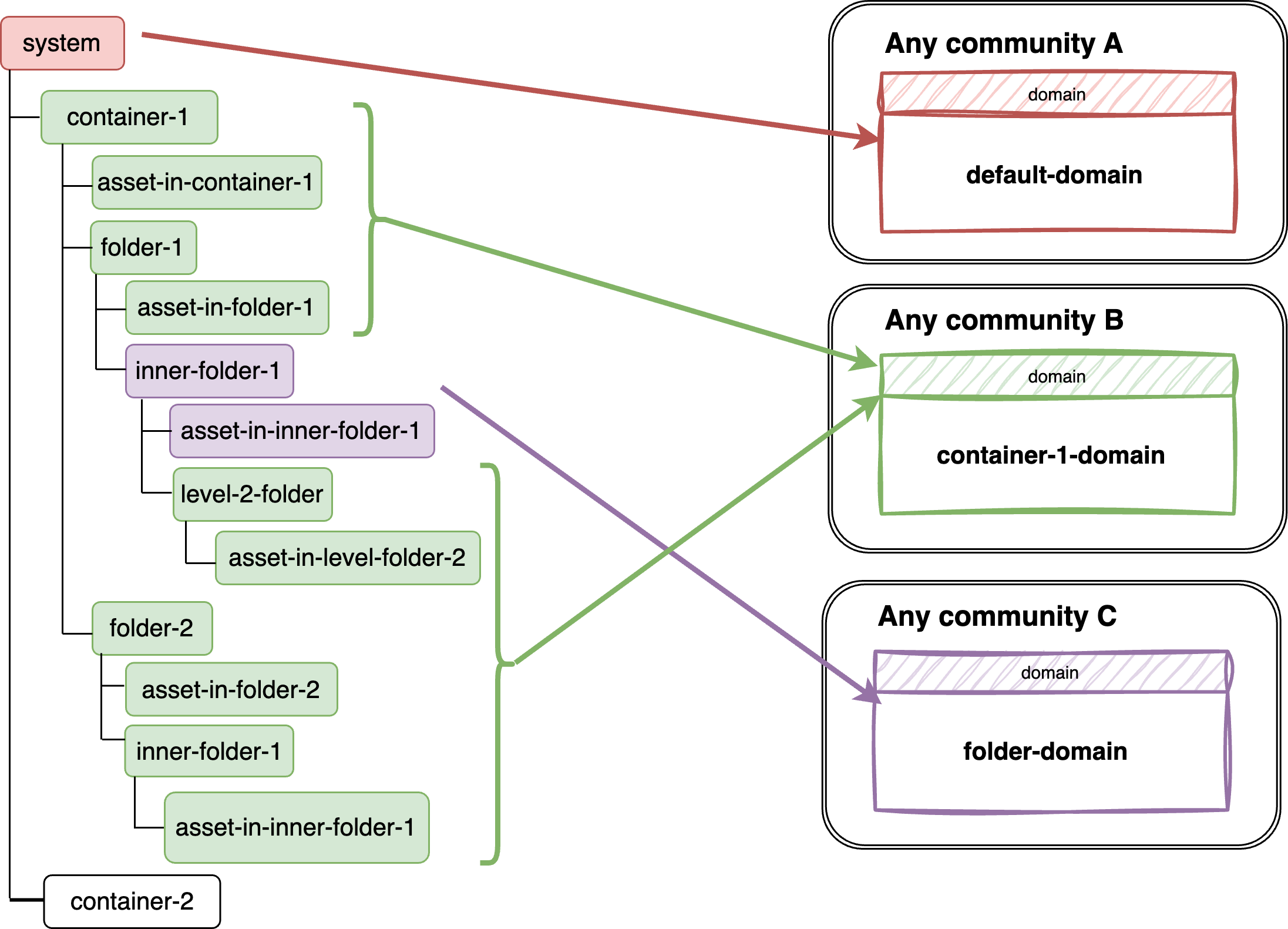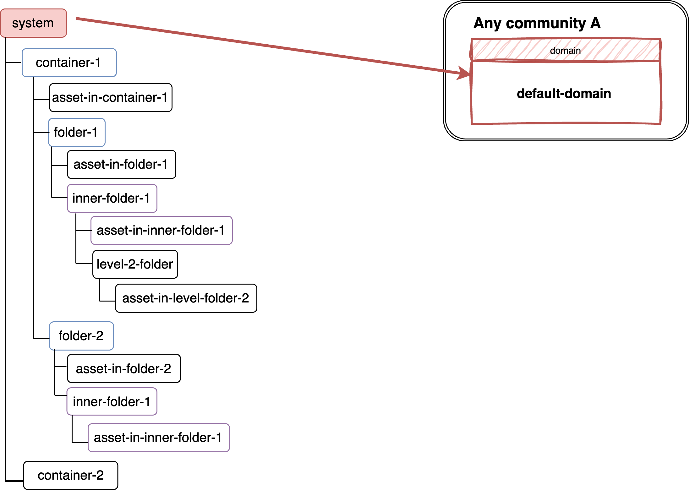 Collibra automatically creates a domain for the folder that is one level up, in this case "container-1". That domain is created in the same community as the default domain.