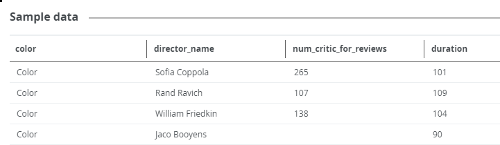 Sample data is a set of randomly collected data from a data source. It provides examples of the data, helping you understand what to expect when using the asset. Depending on your environment, sample data can be shown for Column, Table, Data Set, Data Product, and Data Product Port assets.