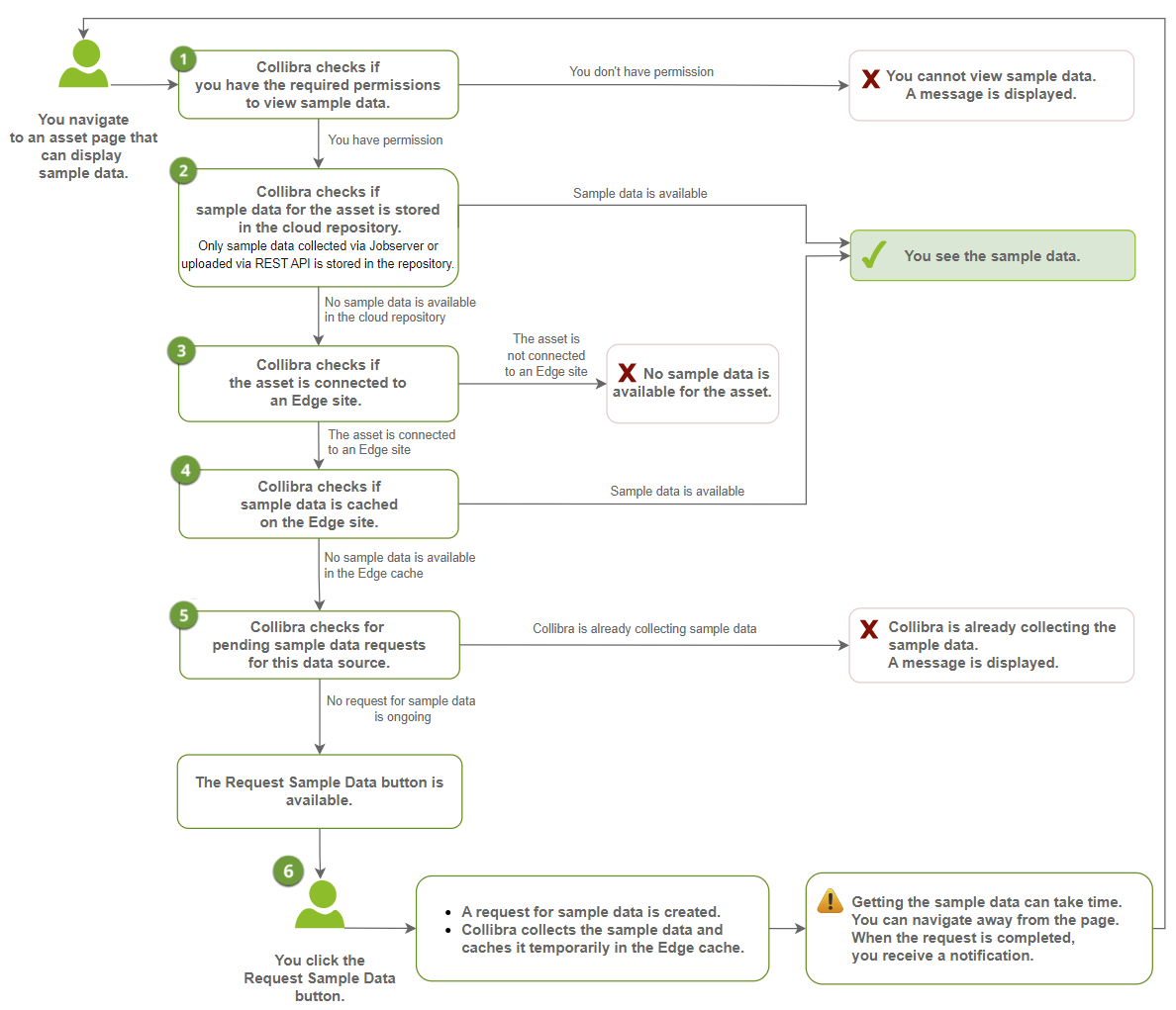 | 5 | Collibra checks if a sample data request is pending for the data source. | A sample data request is pending for the data source: