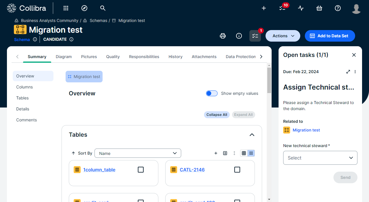 Depending on the workflow configuration, a first migration task opens.TipThe domain of the asset and the asset name are only updated, if needed, after a first synchronization of the schema via Edge.