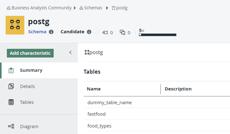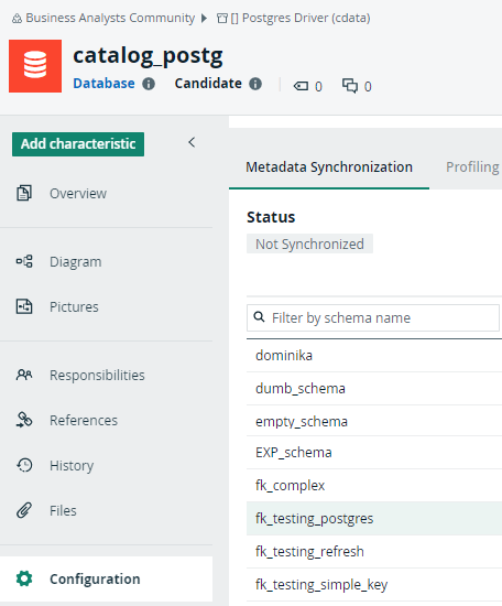 If Collibra can find the schema name via the Schema property in the Jobserver configuration, the name is automatically suggested. Otherwise, you can check the name in the list of schemas in the Configuration tab pane of the Database asset.