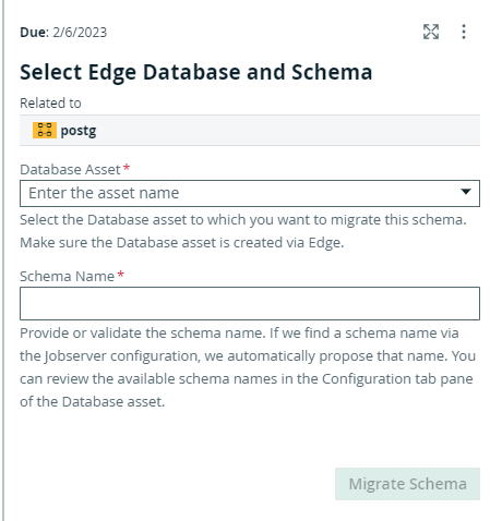 - Enter the name of the Database asset created via Edge to which you want to migrate the existing schema.