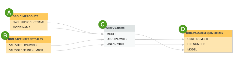 - You can show table-level lineage, column-level lineage, and indirect lineage.