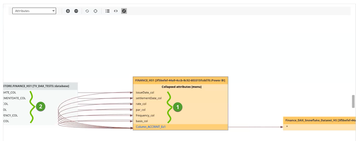 Prior to DAX analysis via Collibra AI, column-level lineage showed only the calculated column and how it related to upstream and downstream data sources. It was not possible to know which columns are aggregated to derive the calculated column. Now, much more information is now shown.