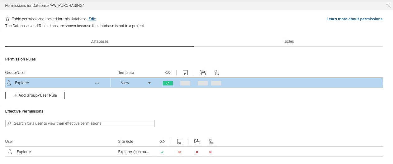 - If Data Management is not enabed, you have to manually give the Explorer user access to the database and tables.
