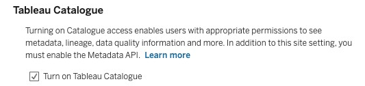 - The Metadata API must be enabled in Tableau to create a technical lineage and benefit from automatic stitching.