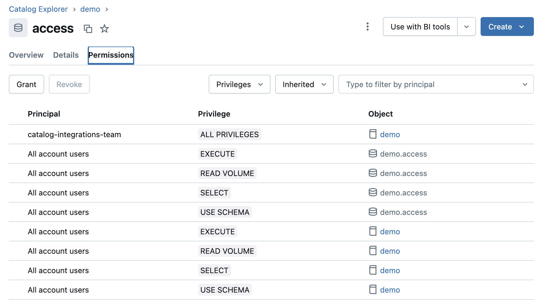 • As a Databricks Unity Catalog user, ensure that you have the following privileges and permissions: