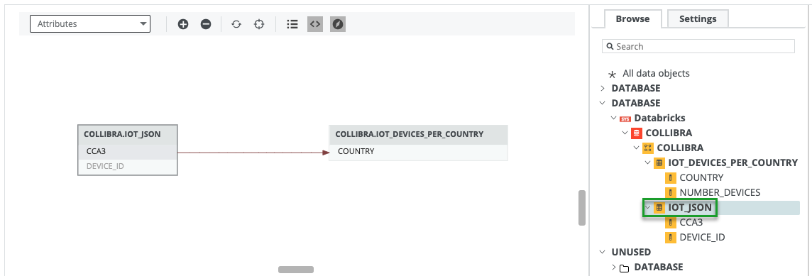 To view the column-level lineage for Google Dataplex, select Attributes in the toolbar.