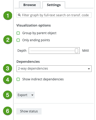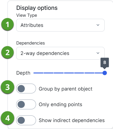 The drop-down list to select the dependencies that you want to visualize. You can select one of the following dependencies: