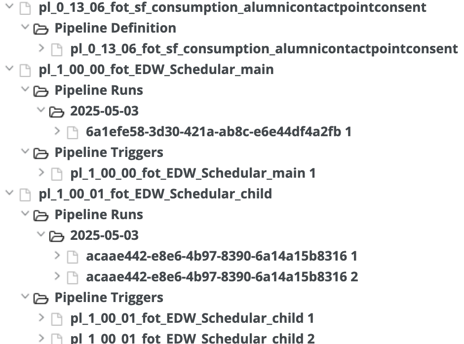 pl_1_00_01_fot_EDW_Schedular_childchild pipeline is included because it was executed by thepl_1_00_00_fot_EDW_Schedular_mainparent pipeline.