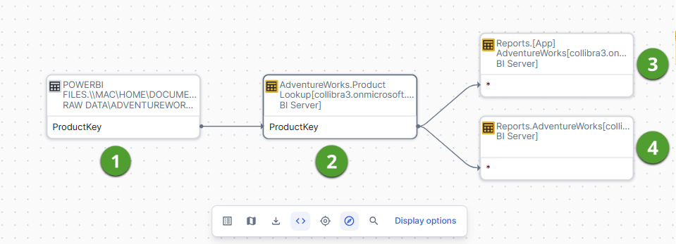Use the following options to see the documentation for the latest or classic technical lineage viewer UI:The technical lineage graph consists of nodes and edges. Each node represents a corresponding object in a data source. Each edge shows a relation between nodes.