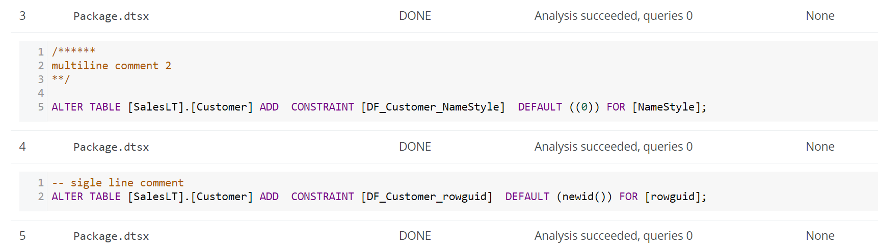 If the metadata that Collibra Data Lineage collects from your data source includes SQL queries, the analysis results might display comments from those SQL queries.