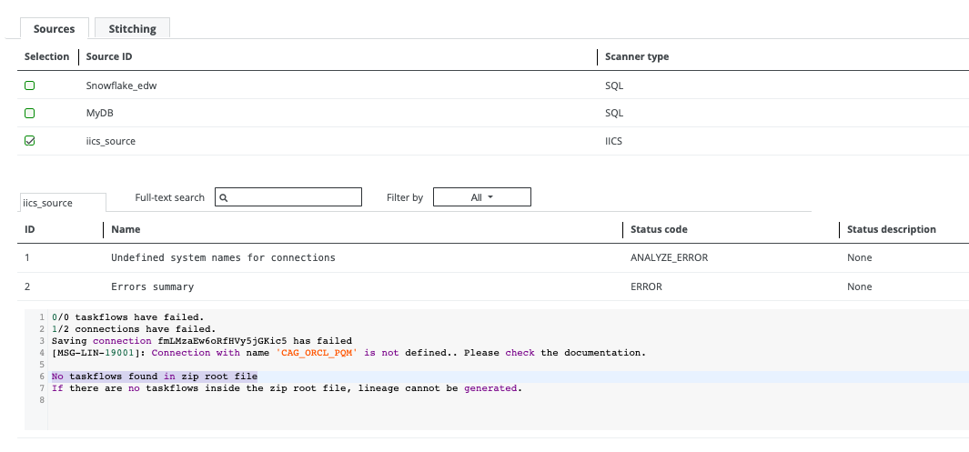 This error occurs when the taskflow type was specified in the objects to be retrieved, but Collibra Data Lineage could not find any taskflows while creating technical lineage for IICS. To resolve this issue, take any of the following actions: