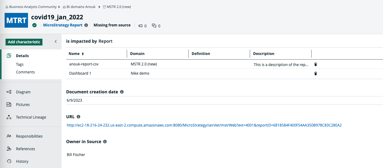 BI integration in Collibra enables you to view all of the critical metadata about your reports and dashboards on dedicated asset pages in Data Catalog. The many attributes help you to identify the most critical reports that have the highest impact. This can help you effectively allocate your resources and minimize disruptions.