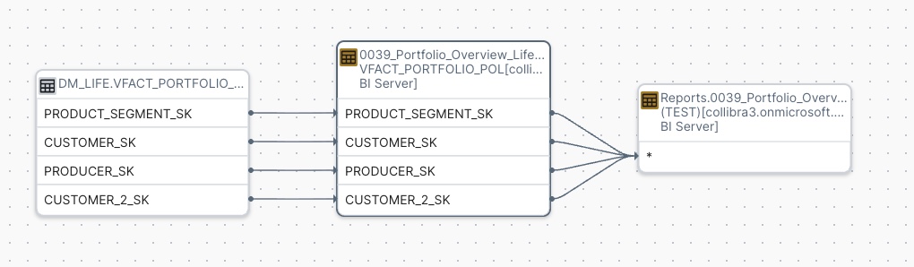 - Business lineage show assets in Collibra that represent some or all of those data objects.