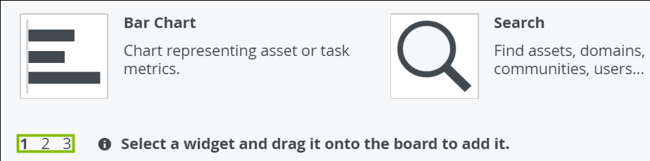 Tip You can vertically resize the Collibra Insights, Embedded Webpage, and Text widgets by using the bi-directional arrow located at the bottom of those widgets.