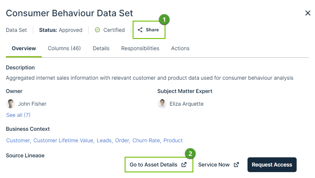 Go to Asset Details | This action allows data consumers to open the asset page of the asset. |