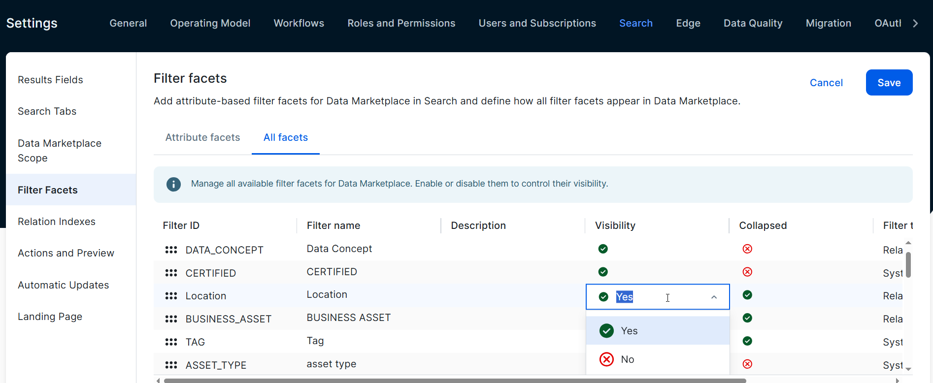 6. Once the reindexing is completed, the filter facet is available in Data Marketplace.