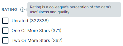 • The order of this list is applied in standalone Data Marketplace and the Data Marketplace search tab on the search page. It is also used in the Catalog and Business Glossary search tabs on the search page if the Search tabs by audience setting is enabled.