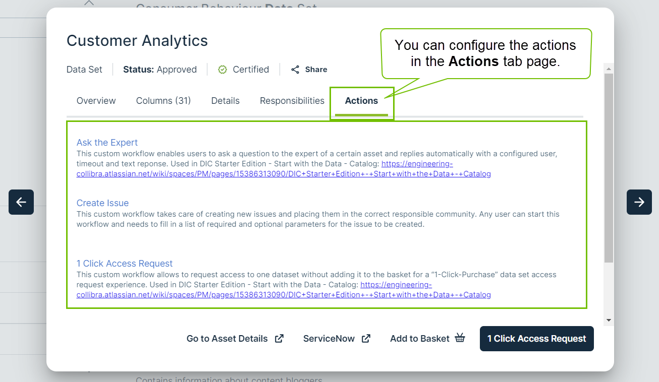 | 3 | Optionally, make actions available in Data Marketplace. |