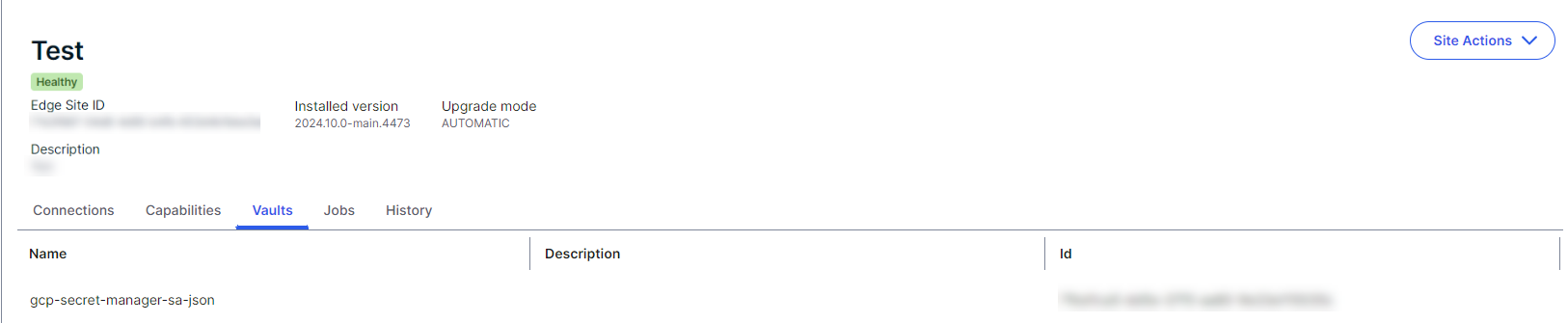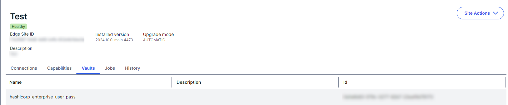 Your available vault integrations are visible on the Vaults tab of your Edge site.
