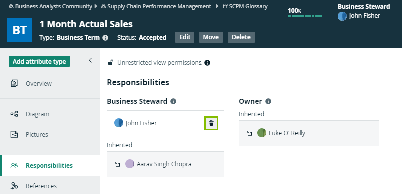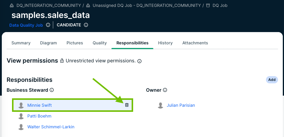 • Depending on the settings in Collibra Console, inherited responsibilities may also be shown.
