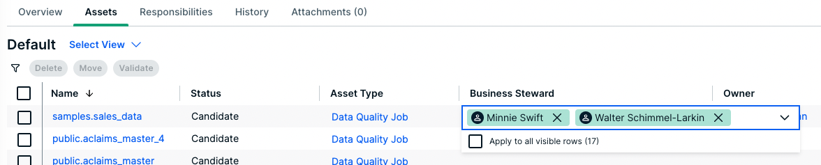 • In any view that contains communities, domains, or assets, in the specific field or column for that role, by adding the fields or columns you want to see.