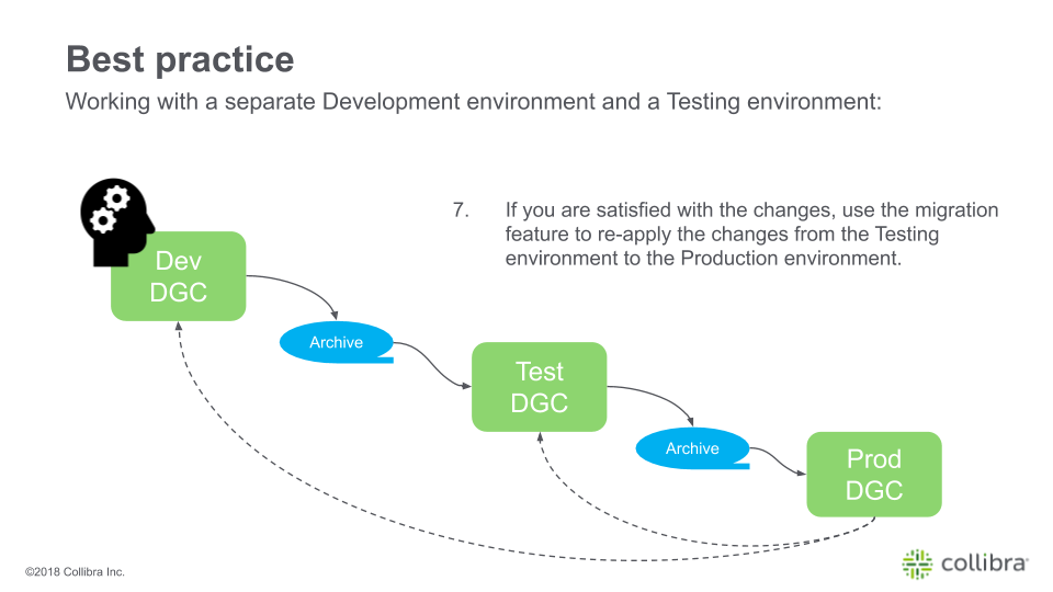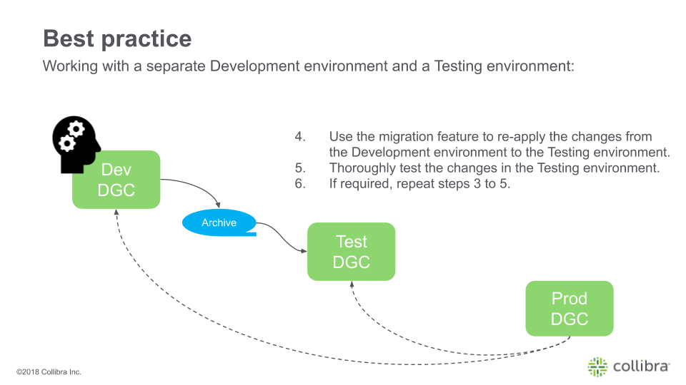 You can migrate the operating model and views from one Collibra environment to another environment. Migration simplifies the process of transferring changes between development, testing, and production environments.