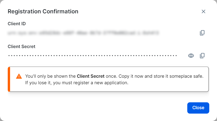 Application Name The name of you application, used to identify it in the list of registered applications. Integration Type This option is only available if you select Platform as the Application Type. Select Data Quality Integration to register a Data Quality & Observability Classic instance. - Click Register.