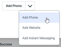 • Select the type of contact information you want to add from the Add Phone button, and click the button.