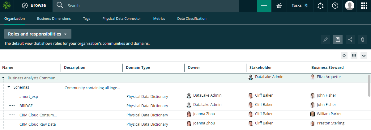 | Data Classification | Shows the available data classes in your Collibra environment. |